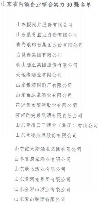 • 山东白酒企业综合实力30强 哪些品牌上榜?