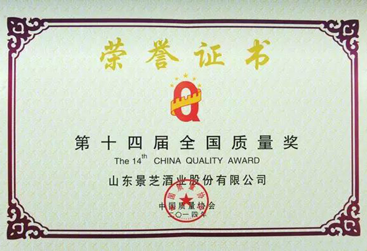 “全国质量奖”设立于2001年,由中国质量协会依据《卓越绩效评价准则》国家标准,综合衡量企业文化、战略、品牌、绩效结果和社会责任等方面的表现进行评审,是对实施卓越质量经营,在质量、经济、社会效益等方面取得显著成效的组织授予的在质量方面的最高荣誉。景芝酒业在2014年获得全国质量奖,成为继茅台、五粮液之后第四家获此殊荣的白酒企业。