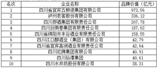 第六届华樽杯四川省酒企排名:
