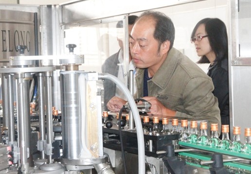 该条自动生产线包括全自动捊瓶机、灌装机、压盖机、贴标机、装箱机、封箱机等设备,主要用于该公司125mI小玻璃瓶酒的灌装生产。据了解,由于关公坊酒业公司主要采用陶瓷酒瓶,生产工艺特殊,主要生产工艺均为人工操作。过去,125ml小玻璃瓶酒的生产与陶瓷瓶酒生产共用生产线,需要投入大量人力,且生产效率低下。近年来,随着夜市消费等因素的影响,关公坊生产的125ml小玻璃瓶酒受到广大消费者的欢迎,产销量逐年提升,传统的生产设备及工艺难以满足市场需求。2012年初,关公坊酒业公司根据实际情况,决定投资新建该生产线。该生产线投产后,将大大提高生产效率,预计每小时产量可突破12000瓶。