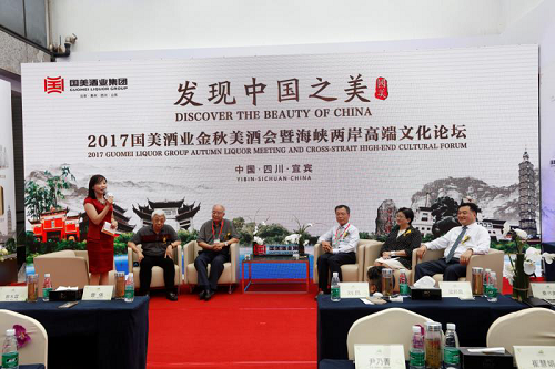2017年9月25日,“发现中国之美——2017国美酒业金秋美酒会暨海峡两岸高端文化论坛”在宜宾国美酒业股份有限公司成功举办。论坛以“弘扬中华白酒文化精髓,促进两岸文化交流”为主题,来自海峡两岸著名的酒业大咖、品牌专家、著名媒体人参加论坛。通过此次论坛的高峰对话,加强了两岸业界人士的交流合作,促进两岸白酒产业的相互了解,熏陶了两岸深深的民族感情,携手推动中华民族酒文化走向世界。