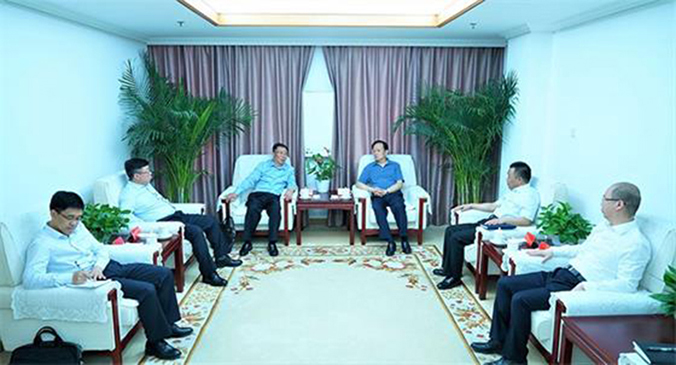 人民日报社社长李宝善(右三)会见李保芳(左三)一行