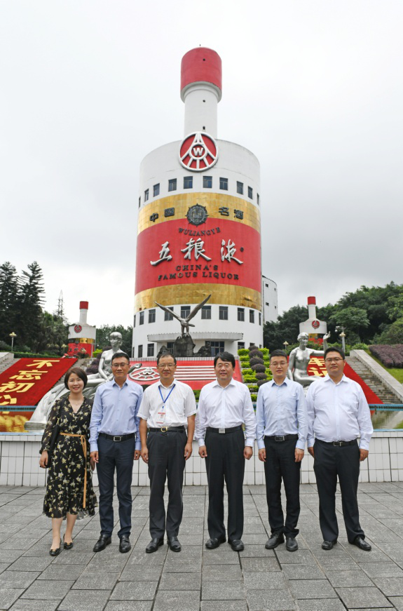 战京涛一行参观了酒文化博览馆、523酿酒车间、鹏程广场、酒圣山等地,深入了解公司历史文化及发展情况,对五粮液悠久的历史传承和始终追求卓越的匠心精神表示高度赞赏。