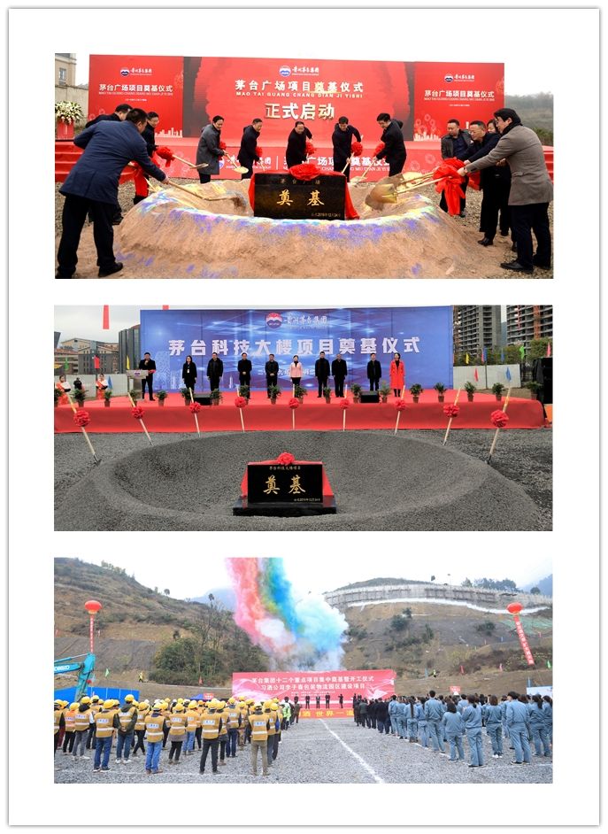 12月24日上午,茅台集团公司2020年重点项目集中开工暨8万吨酱香系列酒包装物流综合项目奠基仪式在仁怀市坛厂街道举行。主会场外,公司还在贵阳、贵定、播州、习水、仁怀等地同步举行11个重点项目的开工仪式,标志着集团规划建设三年行动计划,全面正式启动。