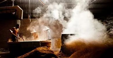 清香型白酒在北方是最常见的,多以高粱玉米为原料酿造,以大麦和豌豆制成的中温大曲为糖化发酵剂最佳,采用清蒸清糟酿造工艺、固态地缸发酵、清蒸流酒,强调“清蒸排杂、清洁卫生”,都在一个“清”字上下功夫,“一清到底”,没有浓香或酱香及其异香和邪杂气味。