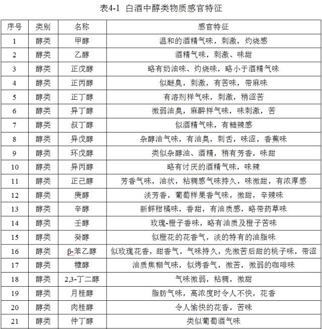 此外,醇类的味觉作用在白酒中也是相当重要的,它构成了白酒相当一部分味觉的骨架。它主要表现出柔和的刺激感和微甜、浓厚的感觉,但有时也会赋予酒体一定的苦味。